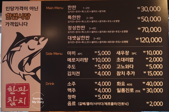 이 곳, 한판참치는 참치 한판을 가격 기준으로 한다.