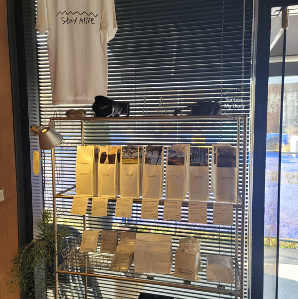 직접 로스팅한 원두를 팩으로 판매하고 있다.