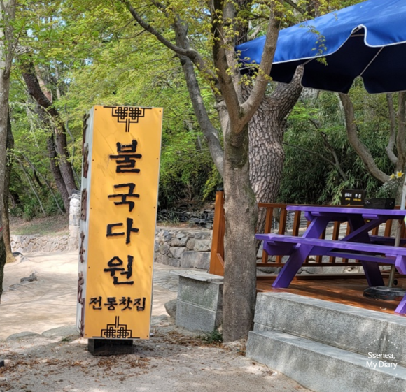 불국사를 방문했던 날씨는 햇빛이 강하고 약간 더웠는데, 걷기에 지쳤을 시 발견한 불국다원은 절대 지나칠 수 없었다.