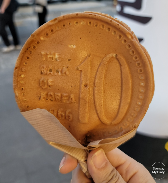 경주 황리단길 먹거리, 경주십원빵은 제품 이름대로 십원 동전 디자인으로 되어있다.