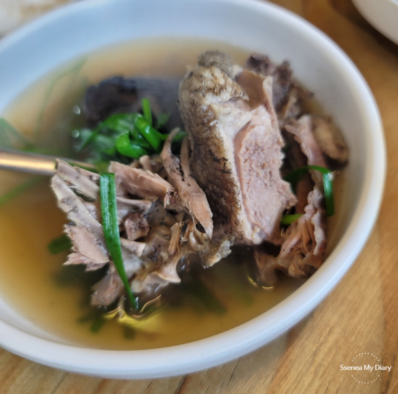 #답십리 한방 #오리백숙 의 오리고기는 닭백숙의 닭고기보다 육질 탄탄하며 담백한 맛이 있다.