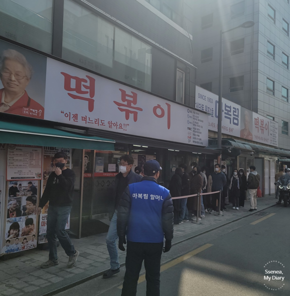 신당동 떡볶이 타운 안에는 수많은 떡복이 집들이 있지만, 오직 마복림 할머니 문앞에서만 대기줄이 길게 늘어져 있다.