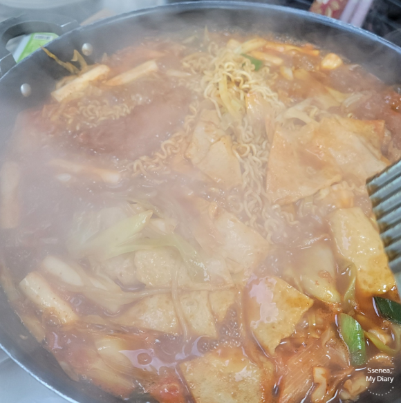 즉석 떡볶이 이기에 비조리 되어 나온 마복림 떡복이를 10분정도 양념을 살살 풀어가면서 가장 쎈불에서 끓여주면 완성이다.
