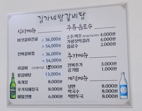 김가네 왕갈비탕 가게 내부와 메뉴판