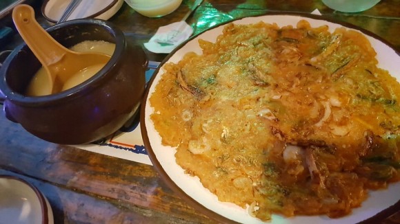해물김치전, 백숙, 그리고 막걸리를 주문하고 밑반찬으로 나온