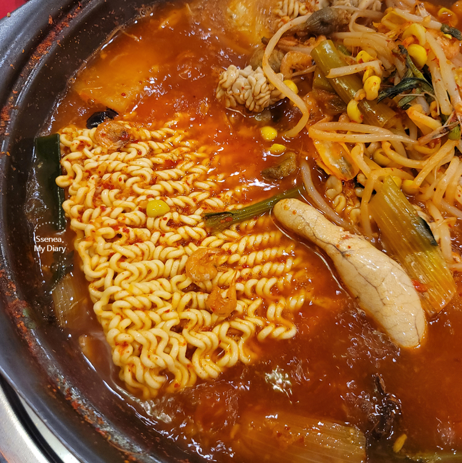 구리역 소문난 알탕 맛집, 상우씨알탕을 다 먹은 후, 추가 사리로 라면을 선택!!