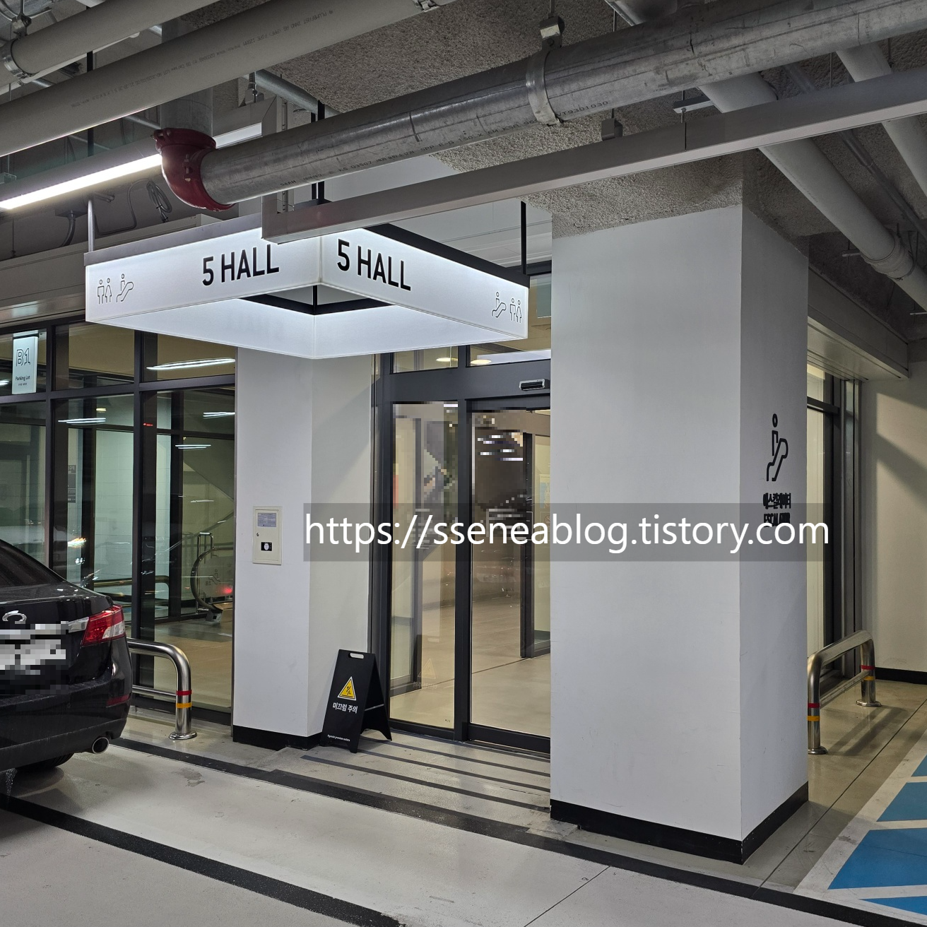 1. 지하주차장에서 5 HALL을 찾아간다.